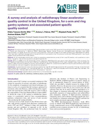 | Title: | A survey and analysis of radiotherapy linear accelerator quality control (QC) in the UK, for c-arm and ring gantry systems and associated patient specific quality control (PSQC) |