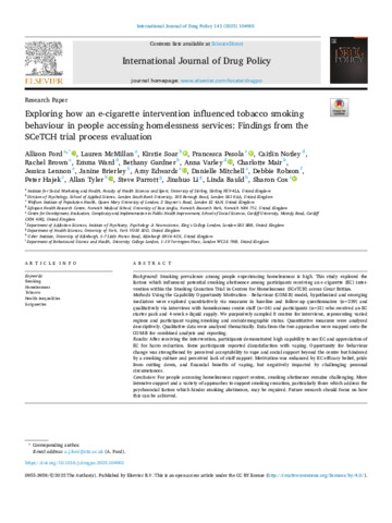 Title: | Exploring how an e-cigarette intervention influenced tobacco smoking behaviour in people accessing homelessness services: Findings from the SCeTCH trial process evaluation |