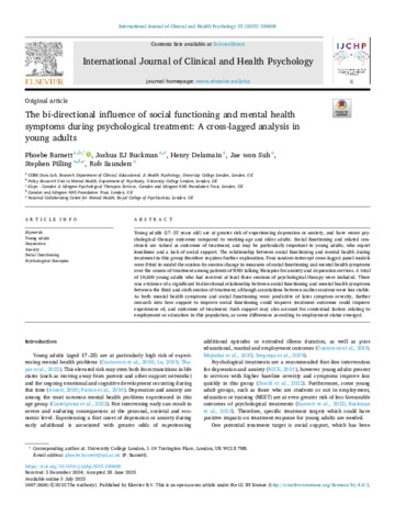 | Title: | The bi-directional influence of social functioning and mental health symptoms during psychological treatment: A cross-lagged analysis in young adults |