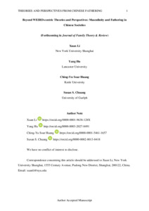| Title: | Beyond W.E.I.R.D. (Western, educated, industrial, rich, democratic)-centric theories and perspectives: masculinity and fathering in Chinese societies |