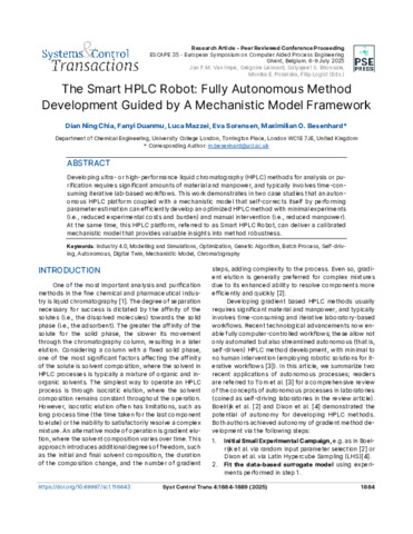 Title: | The Smart HPLC Robot: Fully Autonomous Method Development Guided by A Mechanistic Model Framework |