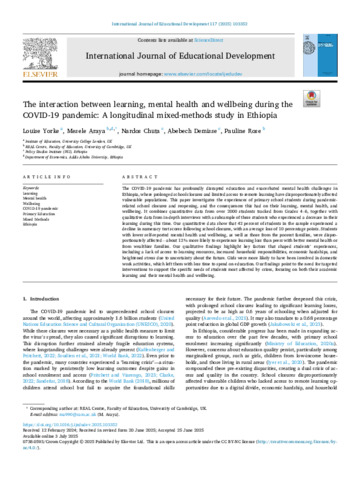 Title: | The interaction between learning, mental health and wellbeing during the COVID-19 pandemic: A longitudinal mixed-methods study in Ethiopia |