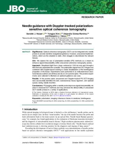 Needle guidance with Doppler-tracked polarization-sensitive optical coherence tomography.pdf - Published Version Download (2MB) | Preview |