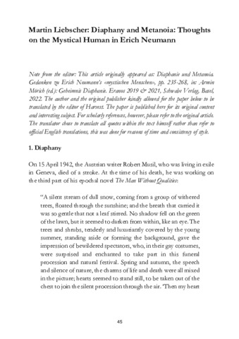 Title: | Diaphany and metanoia: Thoughts on the mystical human in Erich Neumann |