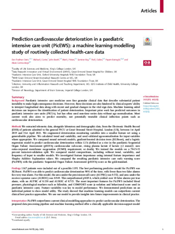 Prediction cardiovascular deterioration in a paediatric intensive care unit (PicEWS) a machine learning modelling study of r.pdf - Published Version Download (1MB) | Preview |