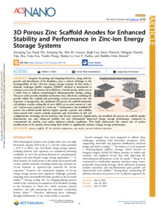 Title: | 3D Porous Zinc Scaffold Anodes for Enhanced Stability and Performance in Zinc-Ion Energy Storage Systems |