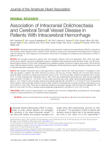 Title: | Association of Intracranial Dolichoectasia and Cerebral Small Vessel Disease in Patients With Intracerebral Hemorrhage |