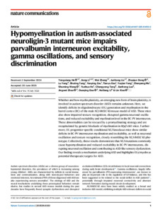 Title: | Hypomyelination in autism-associated neuroligin-3 mutant mice impairs parvalbumin interneuron excitability, gamma oscillations, and sensory discrimination |