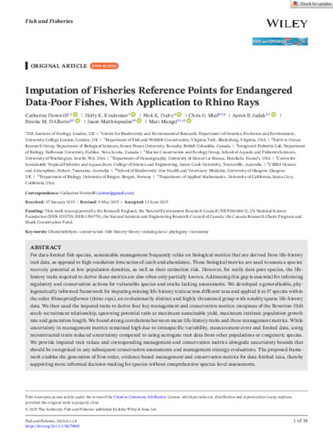 Imputation of Fisheries Reference Points for Endangered Data-Poor Fishes, With Application to Rhino Rays.