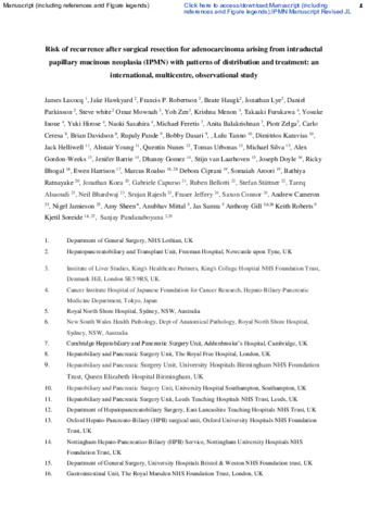 Risk of Recurrence After Surgical Resection for Adenocarcinoma Arising From Intraductal Papillary Mucinous Neoplasia (IPMN) - AAM.pdf - Accepted Version Download (1MB) | Preview |