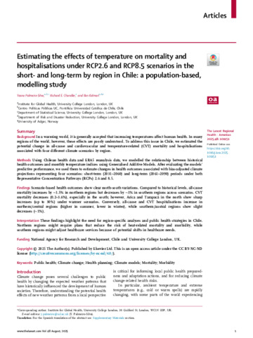 | Title: | Estimating the regional effects of temperature on mortality and hospitalisations in Chile: a population-based, modelling study using four different climate change scenarios |