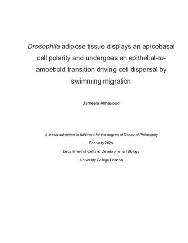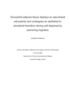 Title: | Drosophila adipose tissue displays an apicobasal cell polarity and undergoes an epithelial-to-amoeboid transition driving cell dispersal by swimming migration |