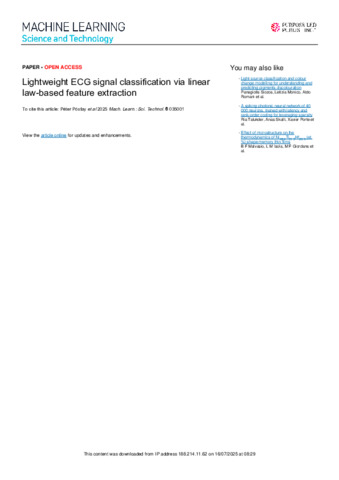 | Title: | Lightweight ECG signal classification via linear law-based feature extraction |