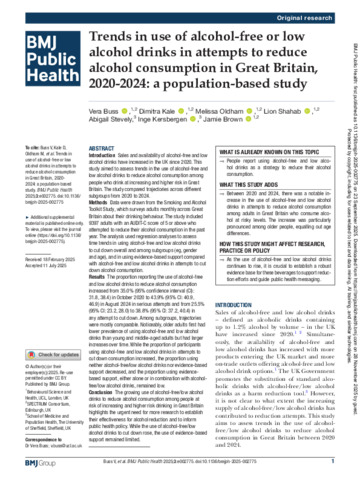 | Title: | Trends in use of alcohol-free or low alcohol drinks in attempts to reduce alcohol consumption in Great Britain, 2020-2024: a population-based study |