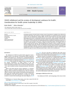Title: | USAID withdrawal and the erosion of development assistance for health: Considerations for health system leadership in LMICs |