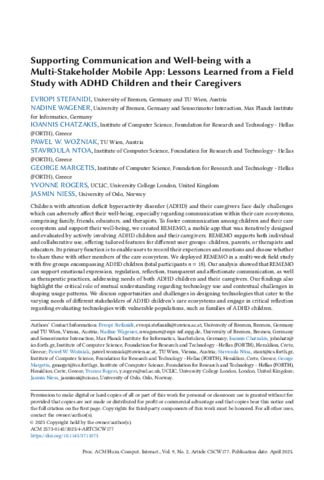 | Title: | Supporting Communication and Well-being with a Multi-Stakeholder Mobile App: Lessons Learned from a Field Study with ADHD Children and their Caregivers |