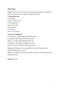 | Title: | Brief interventions for smoking or alcohol moderated by history of mental health condition: A national survey of adults in Great Britain 2020-2023 |