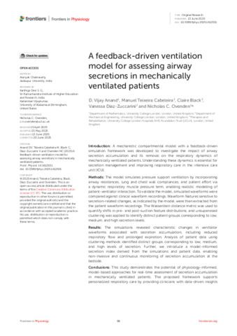 | Title: | A feedback-driven ventilation model for assessing airway secretions in mechanically ventilated patients |