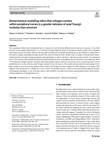 Title: | Biomechanical modelling infers that collagen content within peripheral nerves is a greater indicator of axial Young’s modulus than structure |