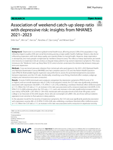 Title: | Association of weekend catch-up sleep ratio with depressive risk: insights from NHANES 2021-2023 |