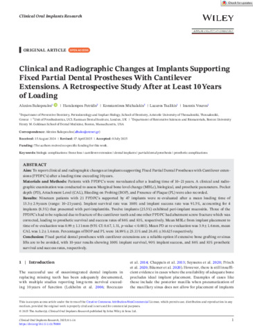 Clinical and Radiographic Changes at Implants Supporting Fixed Partial Dental Prostheses With Cantilever Extensions. A Retrospective Study After at Least 10 Years of Loading.