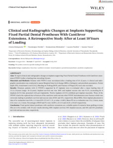 Title: | Clinical and Radiographic Changes at Implants Supporting Fixed Partial Dental Prostheses With Cantilever Extensions. A Retrospective Study After at Least 10 Years of Loading |
