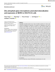 Title: | Zinc phosphate glass microspheres promoted mineralization and expression of BMP2 in MC3T3-E1 cells |