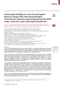 Title: | Examining the feasibility of a crisis-focused Cognitive Behaviour Therapy (CBT)–informed psychological intervention for inpatients experiencing psychosis (the CRISIS study): results from a pilot randomised controlled trial |