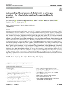 | Title: | Metabarcoding of larval guts reveals diet diversity in native apex predators – the yellowjacket wasps Vespula vulgaris and Vespula germanica |