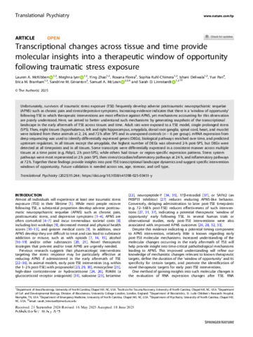 Title: | Transcriptional changes across tissue and time provide molecular insights into a therapeutic window of opportunity following traumatic stress exposure |