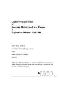 | Title: | Lesbians' Experiences of Marriage, Motherhood, and Divorce in England and Wales: 1945-1999 |