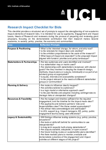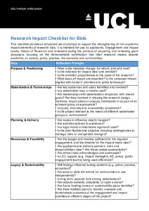 UCL Institute of Education Research Impact Checklist for Bids.pdf Download (159kB) | Preview |