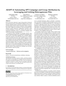 Title: | ADAPT it! Automating APT Campaign and Group Attribution by Leveraging and Linking Heterogeneous Files |