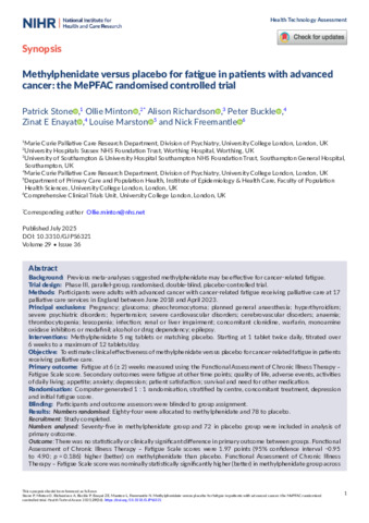 Title: | Methylphenidate versus placebo for fatigue in patients with advanced cancer: the MePFAC randomised controlled trial |