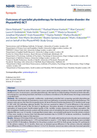 Outcomes of specialist physiotherapy for functional motor disorder: the Physio4FMD RCT.