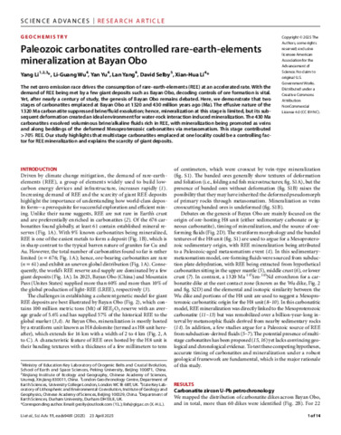 | Title: | Paleozoic carbonatites controlled rare-earth-elements mineralization at Bayan Obo |