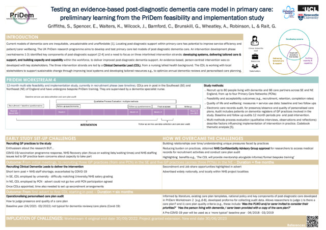 Testing an evidence-based post-diagnostic dementia care model in primary care: preliminary learning from the PriDem feasibility and implementation study.
