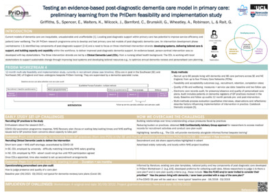Title: | Testing an evidence-based post-diagnostic dementia care model in primary care: preliminary learning from the PriDem feasibility and implementation study |