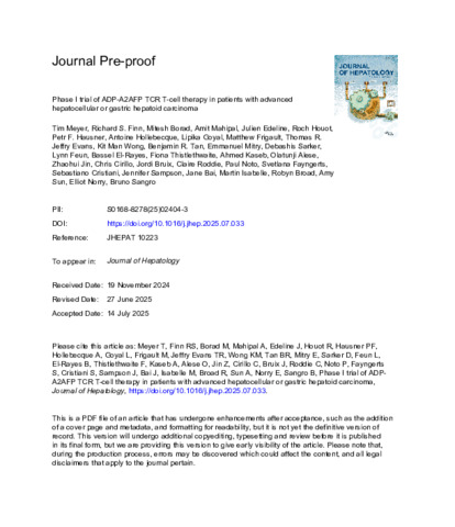 | Title: | Phase I trial of ADP-A2AFP TCR T-cell therapy in patients with advanced hepatocellular or gastric hepatoid carcinoma |
