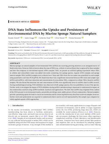 DNA State Influences the Uptake and Persistence of Environmental DNA by Marine Sponge Natural Samplers.pdf - Published Version Download (621kB) | Preview |