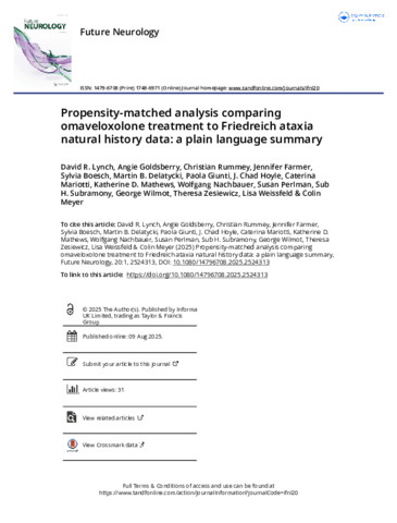 | Title: | Propensity-matched analysis comparing omaveloxolone treatment to Friedreich ataxia natural history data: a plain language summary |