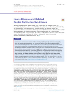 Naxos disease is a rare autosomal recessive condition combining arrhythmogenic right ventricular cardiomyopathy, woolly hair, and palmoplantar keratoderma. The first identified causative variant was in the gene encoding the desmosomal protein plakoglobin. Naxos disease exhibits fibro-fatty myocardial replacement with immunohistological abnormalities in cardiac protein and signaling pathways, highlighting the role of inflammation and potential anti-inflammatory treatments. Childhood cutaneous signs precede cardiac features, which are diagnosed by familial and genetic evaluation, electrocardiography and cardiac imaging. Disease progression necessitates holistic care with risk management and lifestyle adjustments, often needing treatment for arrhythmia and heart failure. Similar phenotypes have been linked to desmoplakin and rarely desmocollin2 gene variants, highlighting the importance of familial and genetic evaluation. This document summarizes current knowledge on Naxos disease and related cardiocutaneous syndromes and initiates an international endeavor to collect and study all global cases, aiming to improve understanding, treatment, and patient care through shared data and research.