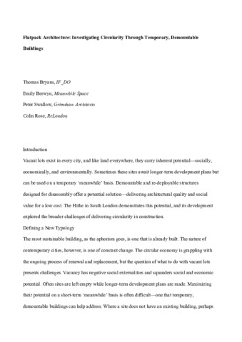 Title: | Flatpack Architecture: Investigating Circularity Through Temporary, Demountable Buildings |