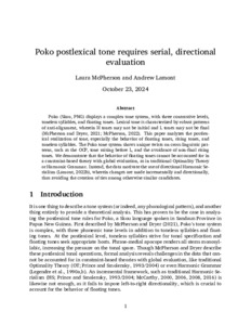 Title: | Poko postlexical tone requires serial, directional evaluation |