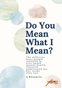 Young people, researchers, and artists often work together in mental health research, but the language they use can carry different meanings for different groups. These differences can sometimes create confusion, exclusion, or disengagement. As part of Project CREATE’s first work stream, focused on exploring key mental health and research-related vocabularies used by researchers and young people, this resource has been developed to: • Recognise that key terms may hold specific meanings for individuals, and that these meanings are not always shared across groups. • Highlight the importance of sensitivity and awareness when differences in understanding arise. • Encourage the use of vocabularies that are meaningful and inclusive, supporting effective and collaborative work with young people. This resource is designed to help researchers and youth participation groups build more inclusive, accessible, and collaborative research practices.