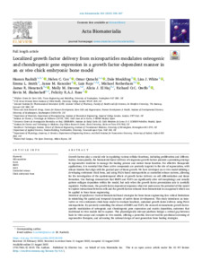 Localized growth factor delivery from microparticles modulates osteogenic and chondrogenic gene expression in a growth factor-dependent manner in an ex vivo chick embryonic bone model.