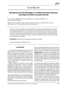 Mycoplasma hominis Meningitis in a 24 Week Premature Neonate Case Report and Short Literature Review.pdf - Published Version Download (88kB) | Preview |