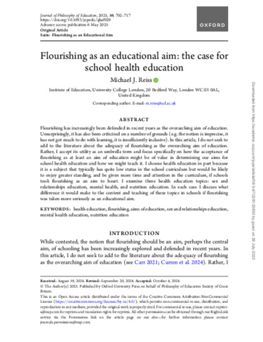 Reiss 2025 JoPE Flourishing as an educational aim - the case for school health education.pdf - Published Version Download (562kB) | Preview |