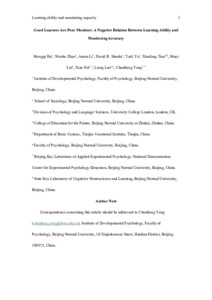 Title: | Good Learners Are Poor Monitors: A Negative Relation Between Learning Ability and Monitoring Accuracy |