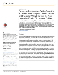 Title: | Prospective Investigation of Video Game Use in Children and Subsequent Conduct Disorder and Depression Using Data from the Avon Longitudinal Study of Parents and Children |